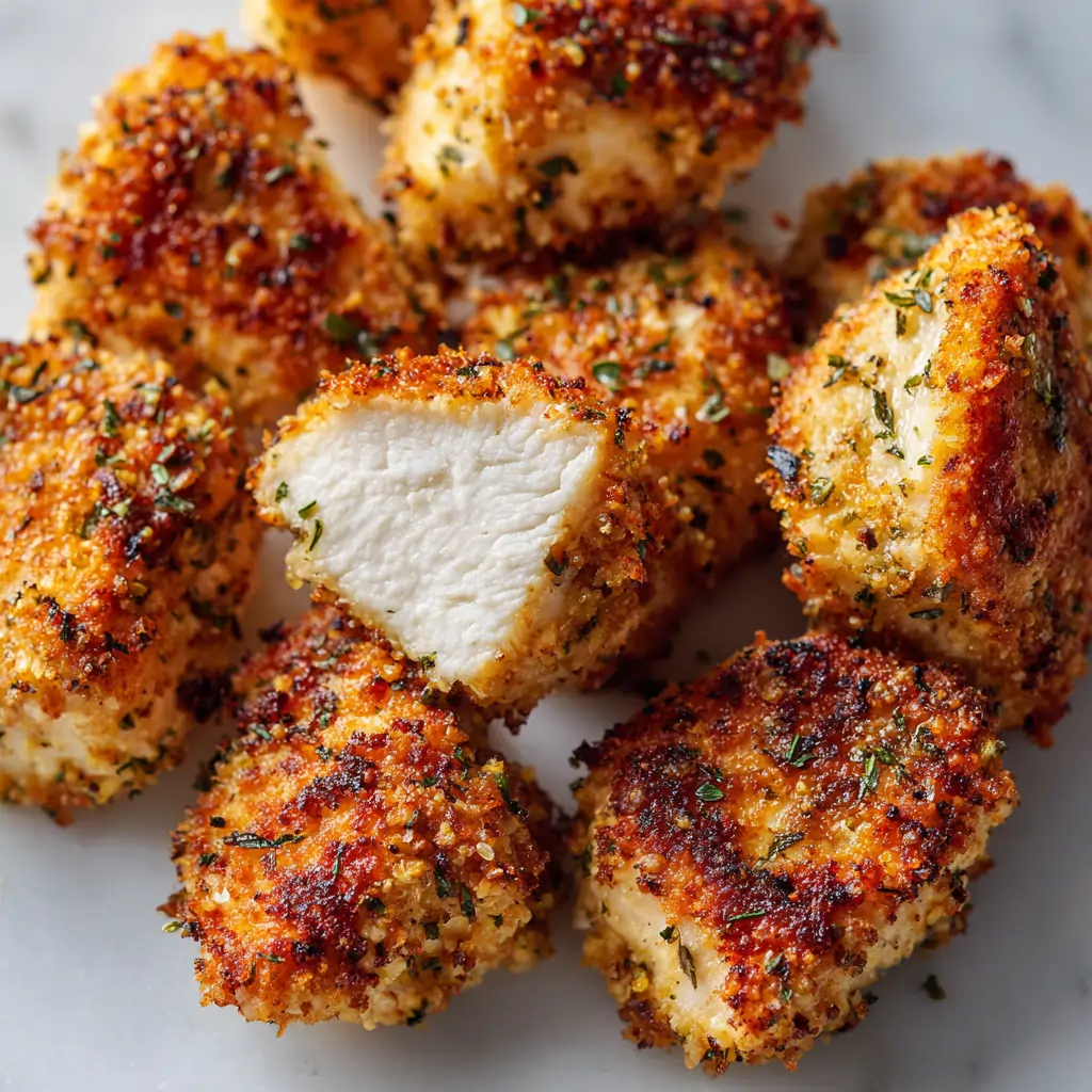 Listen… this is illegal levels of delicious. 😱 These chicken bites are the ultimate comfort food, with a crispy coating that shatters with each bite, revealing a juicy, flavor-packed interior. And the best part? You can whip them up in your trusty air fryer, which means no messy frying and no need to heat up the whole kitchen. 🙌 Plus, they’re the perfect blank canvas for all your favorite dipping sauces and seasonings. Get ready to impress your friends, family, and your food-loving inner circle with these golden, irresistible bites. 🤩