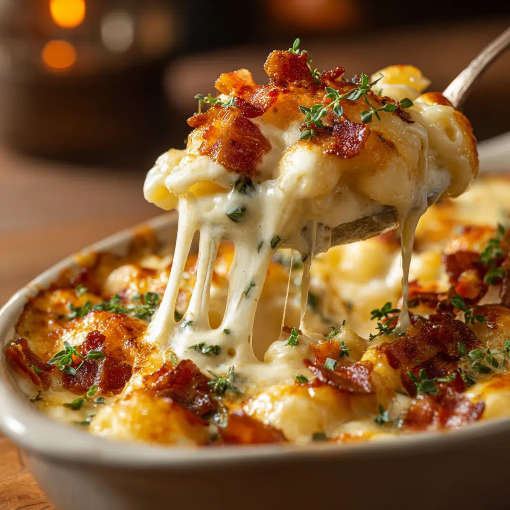 Welcome to the most epic, comfort-food-coma-inducing mac and cheese recipe you’ll ever meet! 🥣 Creamy, cheesy, and loaded with crispy bacon bits – this dish is about to become your new best friend (sorry, actual friends 🤷♀️). Grab your comfiest sweatpants and get ready to dive in, because this mac is about to rock your world. 😍