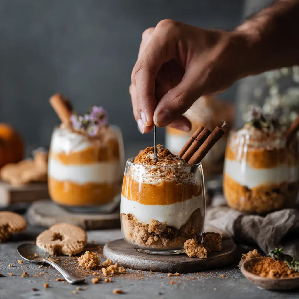 A perfect layering project for little hands — creamy pumpkin mousse, crushed cookies, and caramel sauce stacked in glasses or jars.
