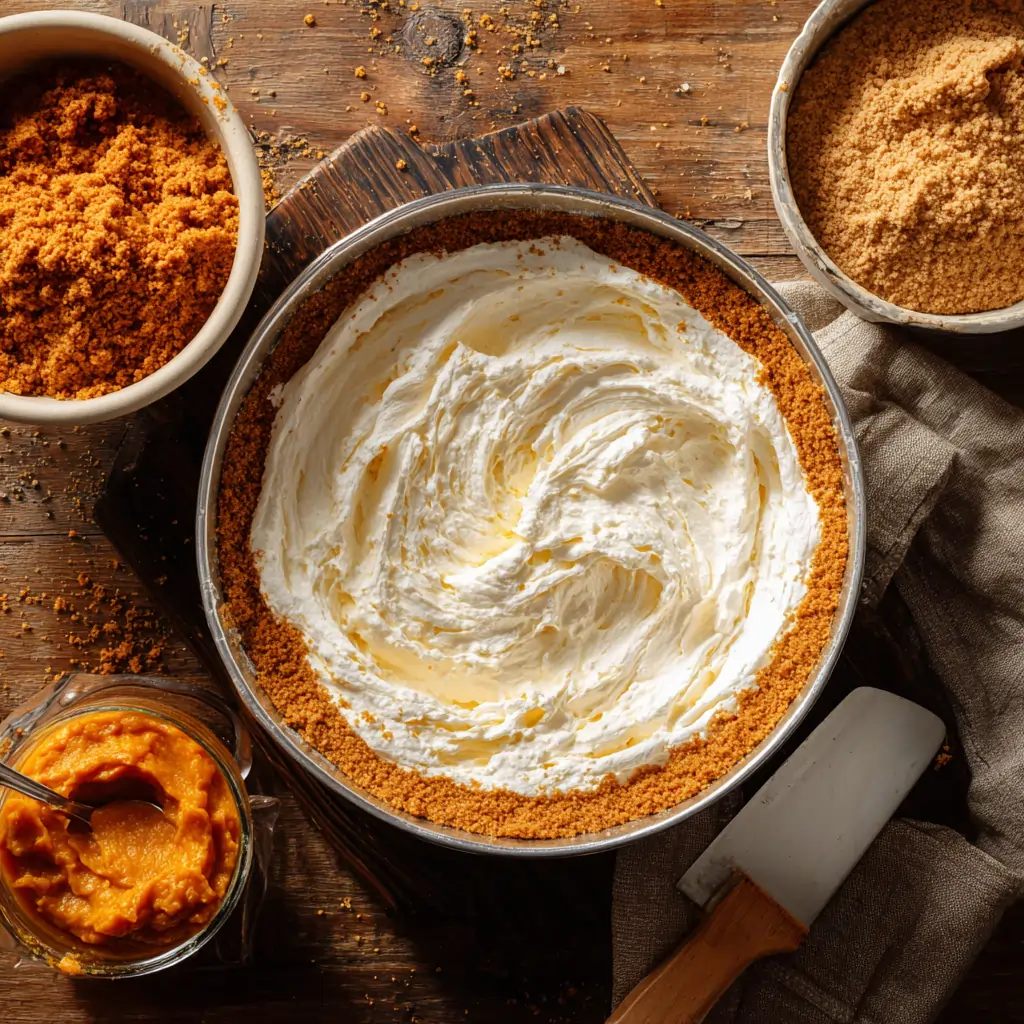- Make the filling: In a large bowl, beat cream cheese until smooth. Whisk in pudding mix, milk, pumpkin puree, spice, and vanilla until creamy.
