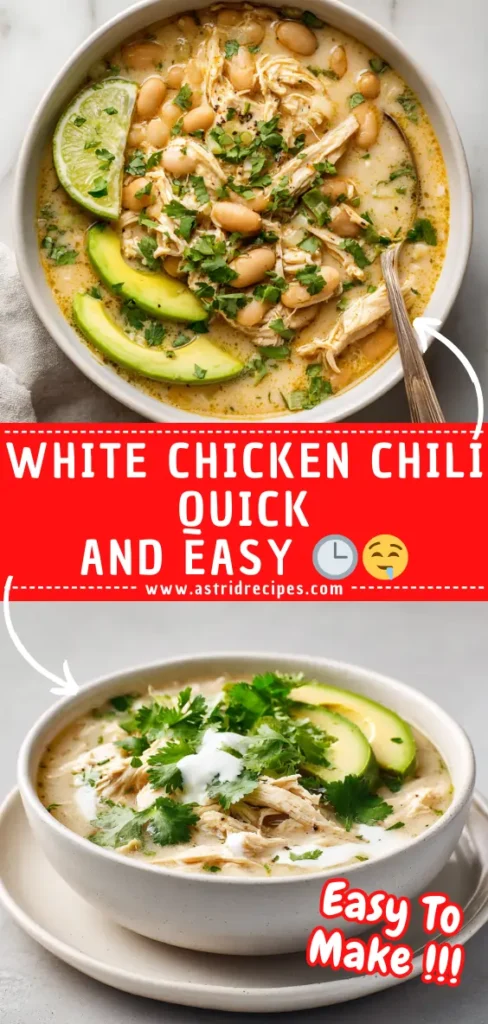 This white chicken chili is the stuff dreams are made of, my friends. Imagine tender shredded chicken nestled in a creamy, slightly spicy broth, loaded with hearty beans and just the right amount of zing. It’s the perfect cozy meal for a chilly day (or let’s be real, any day). The best part? It comes together with minimal effort, which means more time for you to sit back, relax, and enjoy the mouthwatering goodness. 😋 This is the kind of dish that’ll have you licking the bowl clean and then begging for seconds. Prepare to become the hero of your household with this white chicken chili recipe!